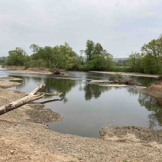 Ziel dieses Projektes war die Verbesserung der Gewässerstruktur zur Wiederherstellung geeigneter Lebensräume für die Äsche. Dabei wurden Sekundärauen angelegt und ein Kiessee an die Eder angeschlossen. Gleichzeitig wurde der Wasserrückhalt verbessert und die Fließgeschwindigkeit reduziert. Diese Maßnahmen wurden durch das Projekt "Biotopverbund für die Zielart Äsche an der Unteren Eder" zu einem größeren Verbund erweitert. (Foto ©RP Kassel)