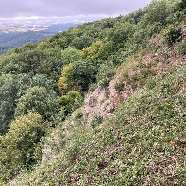 Um einen funktionalen Biotopverbund zu entwickeln, wurden Maßnahmenvorschläge zur Verbesserung der Bedingungen für die Berg-Kronwicke erarbeitet. Diese ist als einzige Raupenfutterpflanze essenziell für das Vorkommen des Glücks-Widderchens. Sie wächst an lichten steilen Berghängen auf karbonathaltigem Untergrund. Diese Standorte sind teilweise auf Grund von Nutzungsaufgabe stark verbuscht. Erhebungen der Berg-Kronwicke als Futterpflanze konnten teilweise per Drohnenbefliegung stattfinden. Nach Analyse der Reliktstandorte wurden und werden im Rahmen des Projektes Flächen mit hohem Verbundpotenzial durch Seilkletterer wieder freigestellt. Die regelmäßigen Kontrollen der einzelnen Standorte zeigen bereits deutliche Erfolge für das Vorkommen des Glücks-Widderchens sowie weiterer Arten der lichten Trockenstandorte. (Foto ©RP Kassel)