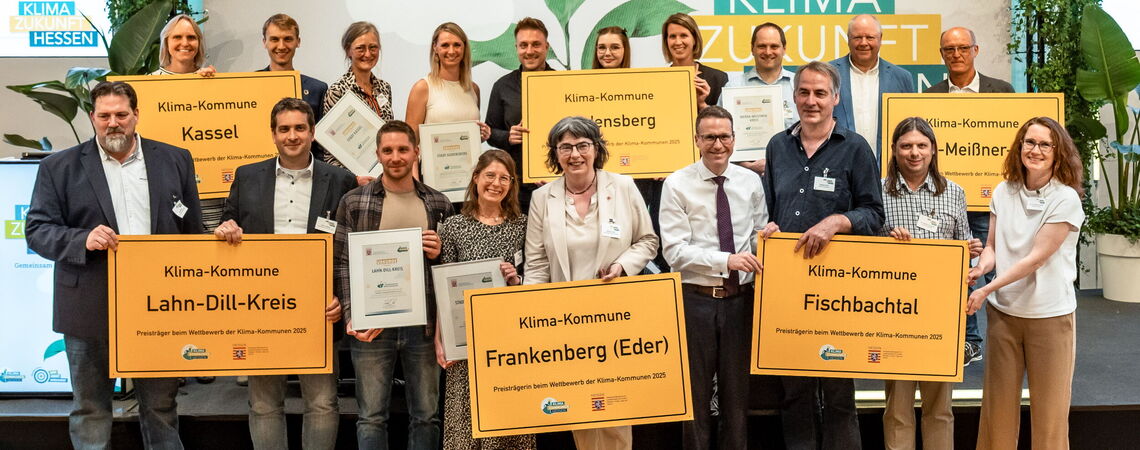 Am 26.06.2025 fand die zentrale Klimaveranstaltung "Klima.Zukunft.Hessen" im House of Logistics and Mobility (HOLM) in Frankfurt statt. Rund 300 Teilnehmerinnen und Teilnehmer aus ganz Hessen kamen zusammen und präsentierten, wie die Vision eines zukunftsfesten und lebenswerten Bundeslandes konkret Gestalt annimmt. Um den Austausch und die Zusammenarbeit aller klimaengagierten Akteure in Hessen zu verstärken, wurden dabei zwei Veranstaltungen vereint: Die „Klima Kommunal“, Fachkonferenz der Klima-Kommunen Hessen und die Veranstaltung des Klimaplans Hessen, Fachveranstaltung zum aktuellen Stand der hessischen Klimapolitik und zur Umsetzung des Klimaplans. Denn Klimaschutz bringen wir nur voran, wenn Politik, Wirtschaft, Zivilgesellschaft und Kommunen im Austausch sind.